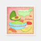 Customize with your name! Enjoy your margaritas and throw a party with these colorful paper party napkins. A margarita, avocado, pepper, guacamole and chips create a fun and whimsy design. The background colors are a combination of coral and coral/yellow texture on a peach coral background. Other colors include green, lime green, red and turquoise blue. A thick black serpentine curvy line outlines the art. This design is original art by Phyllis Dobbs and coordinates with invitations, stamps and other products in this store.