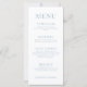 Enhance the charm of your wedding reception with these sophisticated and stylish botanical themed wedding menu cards. Decorated with delicate light blue calligraphy script and bouquet intertwined with colorful pastel wildflower and meadow flower blooms.