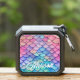 Bold monogram on colorful mermaid scales background Bluetooth speaker for your outings in nature or stay at home.