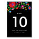 Featuring a colorful spray of Mexican embroidery inspired flowers, this double sided black table number is a great addition to your reception decor. Personalize all the text including the table name, number and get creative with the two lines of text at the bottom with your new last names, wedding date, location and even custom table names or a personalized note about your love story.
