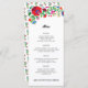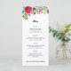 This beautiful and colorful wedding menu has easy to edit text boxes, a colorful, modern take on traditional Mexican embroidery, and the long skinny format that is easy to tuck into folded napkins.