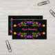 Colorful business cards with floral borders of Mexican fiesta flowers. The template is set up for you to add your name or business name in brush script lettering on the front plus, you can add your position or profession and contact information on the back.