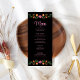 Create a captivating dining experience with our "Colorful Mexican Floral Fiesta Wedding Menu Card" against a striking black backdrop. This menu card showcases vibrant hand-painted watercolor flowers in shades of orange, red, and purple, embodying the vivacious spirit of Mexico. The elegant dark text stands out against the bold background, presenting your curated menu offerings with sophistication. Elevate the ambiance of your wedding reception with this chic and festive menu card, combining visual allure and functionality for a memorable celebration.