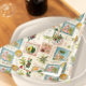 Brighten your table setting with this colorful cloth napkin featuring painterly watercolor illustrations of avocados, tropical fruits, palm trees, and vintage postcard-style frames. Inspired by the lively spirit of Mexico, it adds a festive and artistic touch to everyday meals or special gatherings.