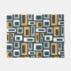 Seamless geometric Mid Century inspirational pattern with colorful (yellow, gray, white, mustard color) squares decoration on dark blue background for everybody who likes simple geometric Mid Century designs.