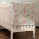 This cute and colorful baby Christmas blanket features a hand-drawn pattern of baby bodysuits, adorable winter stuffed animals (penguin, reindeer, teddy bear), bibs, bottles, pacifiers and xmas gifts, all against a very soft mint background with scattered cute little stars.