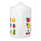Bright and colorful mixed fruit pattern with lemons, pears, bananas, cherries, apples, blueberries, strawberries and oranges.