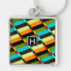 Colorful Modern Abstract Stripes & Monogram Keychain