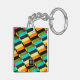 Colorful Modern Abstract Stripes & Monogram Keychain