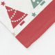 This Holiday theme fleece blanket features a colorful pattern of red, green, and gold modern design Christmas trees. The images are placed on a white background, with a matching red border at top and bottom. Festive! Pattern design credit to https://www.etsy.com/shop/ephrazydesign.