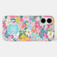 Customize this gorgeous modern colorful flower garden of flowers in pink, blue, orange, yellow and white iPhone 16 case with your your initials in a modern CAP font in white on blue. It's so vibrant and happy!