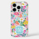 Customize this gorgeous modern colorful flower garden of flowers in pink, blue, orange, yellow and white iPhone 16 pro case with your your initials in a modern CAP font in white on blue. It's so vibrant and happy!