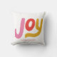 Add a stylish & festive touch to your home with a stylish holiday throw pillow. The modern holiday pillow features "Joy" in pink, red & gold hand-lettered text. Personalize the pillow by adding your name or custom text below in a red font style. The joy holiday pillow reverses to a red and white dotted pattern. Designed to coordinate with our Colorful Modern Joy holiday collection.