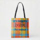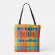A modern designer bag featuring a geometric plaid pattern in happy colors and your own custom (funny or other) texts (optional). You can rotate or scale the pattern if you like.