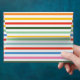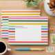 This envelope is modern and chic with a rainbow of colored stripes framing the address of friends and family members. Simple and clean return address text is easily personalized to make sending easier. Use this envelope for new year cards, personal stationery, or just to send happy mail out into the world.