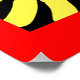 An original tribal style abstract totem war eagle face, complete with vibrant colorful war paint. He is mirrored and framed with vivid red which matches his intense eyes. ©Shelli Fitzpatrick