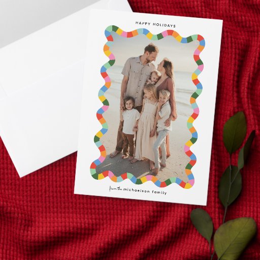 Colorful Modern Wavy Frame Photo Christmas Holiday Postcard