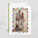Inspired by eclectic textile seam binding and the on-trend wavy border frame elements loved by all, this portrait photo Christmas holiday postcard is modern but chic with a rainbow of colored blocks framing your best photo. Simple and clean text is easily personalized with your ideal holiday greeting, names and the backer features a coordinated multi color accent frame, return address and space for a short update message geared toward family and friends.