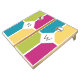 Colorful, stylish SUMMER COLORS MONOGRAM Cornhole Set with cerise pink, banana yellow, cyan blue and lime green quadrants with white borders and white square at the centre. There is a CUSTOMIZABLE MONOGRAM at the centre in black sans serif typography. Matching items available.The monograms are CUSTOMIZABLE and unlinked. Ideal addition to summer weddings, birthdays and other celebrations.