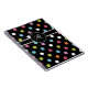 Stylish notebook with colorful polka dot pattern and monogram space you can add a name or initials. Great for keeping notes, writing in recipes, or keeping lists and very fashionable and modern.