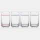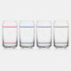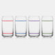 Design features bright, colorful stripes encircling top and bottom. Initials you supply are displayed in center. Colors featured on individual glasses are red, blue, purple and green.