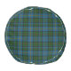 Stylish and colorful this pouf style seat is done in the classic blue, green, black, yellow, and red Scottish clan MacLeod plaid pattern, around the outside of the seat. The top is done in solid green with a yellow edged green circle, in the middle, with a black large one letter monogram and golden yellow custom text ready to personalize. The bottom of the seat is done in the same colorful plaid pattern as the sides are done in. Personalize the monogram and text to read what you want.