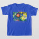 Color My World Pretty on a colorful girl's Tee shirt. This multicolored girl's top features a blue koi pond made of colorful mosaic tiles dappled in sunlight and shadow. A trio of green koi fish in a corner appear to have stopped to smell the red, yellow and pink flowers. Customize with your choice of color t-shirt and personalize with Your girl's name.