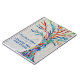 This decorative notebook features a print of a rainbow colored tree on a pale gray background.