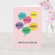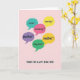 This greeting card features a pale pink background with five colorful speech bubbles clustered in the center, like excited voices gathering around someone they adore ❤️. The bubbles are teal, hot pink, sunny yellow, deep purple, and emerald green, each with a slightly textured look and gently uneven outlines that feel human and tender. Inside them, short calls to a caring figure appear in a casual handwritten-style font, including “mom!”, “mother!”, “nommy?”, and “omg mom!”, with exclamation points and a single question mark adding a sweet, chatty rhythm. The mix of words and punctuation suggests a close bond—like a friend or family member who’s been called on in a rush, in laughter, and in need. Near the bottom, the message “THANKS FOR ALWAYS BEING THERE.” is set in all caps in a similar hand-drawn look, placed under the bubbles and centered as a steady anchor 🌼. The text appears in a darker tone that contrasts clearly with the soft background, making it easy to read without overpowering the artwork. The overall layout stays simple and open, letting the cluster of bubbles stand out while leaving comfortable breathing room around them. The final detail is the subtle irregularity in the bubble edges and lettering, giving the shapes a lightly sketched, textured finish.