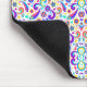 Colorful mouse pad features an intricate floral pattern with vibrant purple, blue, and green hues. The design conveys a lively and energetic feel.