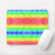 Colorful mousepad featuring a bright, symmetrical pattern of diagonal rainbow stripes and geometric shapes, evoking a vibrant and playful mood.