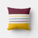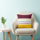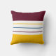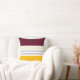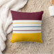 Modern throw pillow features a simple striped design in fall color palette: amber yellow, white, and mulberry purple.