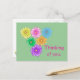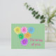 Decorative design of colorful mums with yellow centers, with Thinking of you, is printed on custom postcards. The text can easily be customized on the template form.