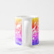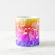Modern, stylish multi-color personalized coffee mug featuring music notes, treble clef and staff with a name, monogram or custom text in your choice of font styles and colors against a bright, colorful background with with purple, pink, red and orange. Ideal for music teachers, musicians, music professionals and music lovers. The sample is shown in the 11 oz. size mug--other mug sizes, styles and colors are available on the ordering page or you can transfer the design to another product. ASSISTANCE: For help with design modification or personalization, color change, resizing, transferring the design to another product or if you would like coordinating items, contact the designer BEFORE ORDERING via the Zazzle Chat MESSAGE tab below or email makeitaboutyoustore@gmail.com.