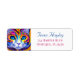 Cool kitty cat with mystical blue eyes and colorful fur AI generated art return address stickers.