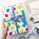 Colorful neon dots and abstract shapes retro pattern eye-catching gift wrapping paper with personalized message (customizable). Lively neon dots and shapes pattern create a visually striking and modern design. The pattern is a true standout with its electrifying neon dots and shapes pattern that demands attention. The neon hues include bright pinks, electric blues, vivid greens, and energetic yellows, creating a dynamic and lively color palette. The pattern consists of a mix of vibrant dots and irregular shapes. The dots may vary in size, creating a sense of movement and energy, while the shapes contribute to the overall modern and edgy aesthetic. Guarantee to brighten up any special day and add vivid and bold present to any celebration or occasion with bold colours and personalized message.
