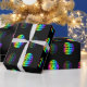 Colorful Neon Rainbow Easter Egg Pattern Black Wrapping Paper