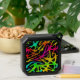Colorful neon splatter paint design, this design features a Colorful neon splatter paint designs on black background, watercolor.