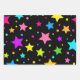 Colorful Neon Stars on Black Wrapping Paper Sheets