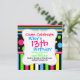 Colorful Neon Stripes Polka Dots Pink Blue Green Invitation
