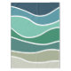 Abstract retro style illustration of colorful (blue, navy blue, grey, green, turquoise) ocean waves decoration on white background