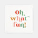 Colorful oh what fun lettering holiday party napkin.