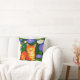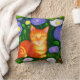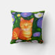 Colorful Orange Cat in Flower Garden Throw Pillow