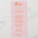 A colorful retro funky modern orange and pink and red wedding dinner menu. Which features chic template design of boho vintage sweet pink background and orange typography. With hand drawn green dessert and pink stripe on green background on the back. Perfect and matching with the whole suite.