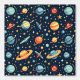 A vibrant outer space-themed pattern showcasing colorful planets, stars, and celestial bodies against a deep blue sky. This whimsical design captures the wonder of the cosmos, making it perfect for space enthusiasts or anyone who loves fun, cosmic art.