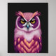 Colorful Owl Bird Artwork design. Colorful, yellow-eyed owl, standing in branch the forest. This oil paint style art is a unique gift for any owl lovers.