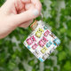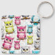 Colorful Owl Birds White Background Pattern Keychain