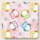 Colorful Owl pattern on a Pink Background Drink Coaster