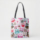 colorful owl pattern tote bag