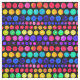 A vibrant pattern of hand stamped acrylic paint dots on a customizible black background. The loose arrangement of the dots creates a fun design with a spontaneous feeling. Change the black background to any color you prefer and adjust the pattern size to make this fabric unique. This fun dot art on custom fabric will add a bold pop of color to any craft or sewing project!